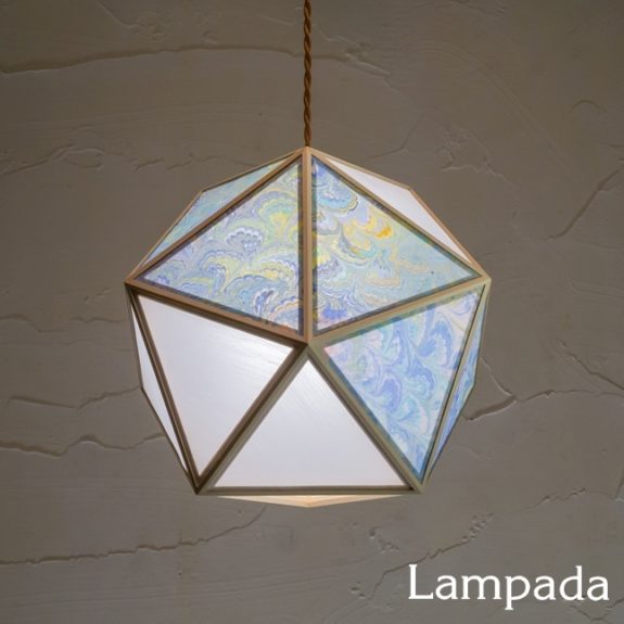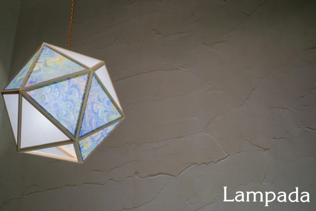 イタリアの伝統技法≪マーブリング≫の作家により一枚ずつ手描きされた紙をワーロン加工し木枠に組み合わせた「Marmo(マルモ)」シリーズ。