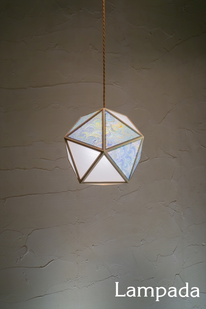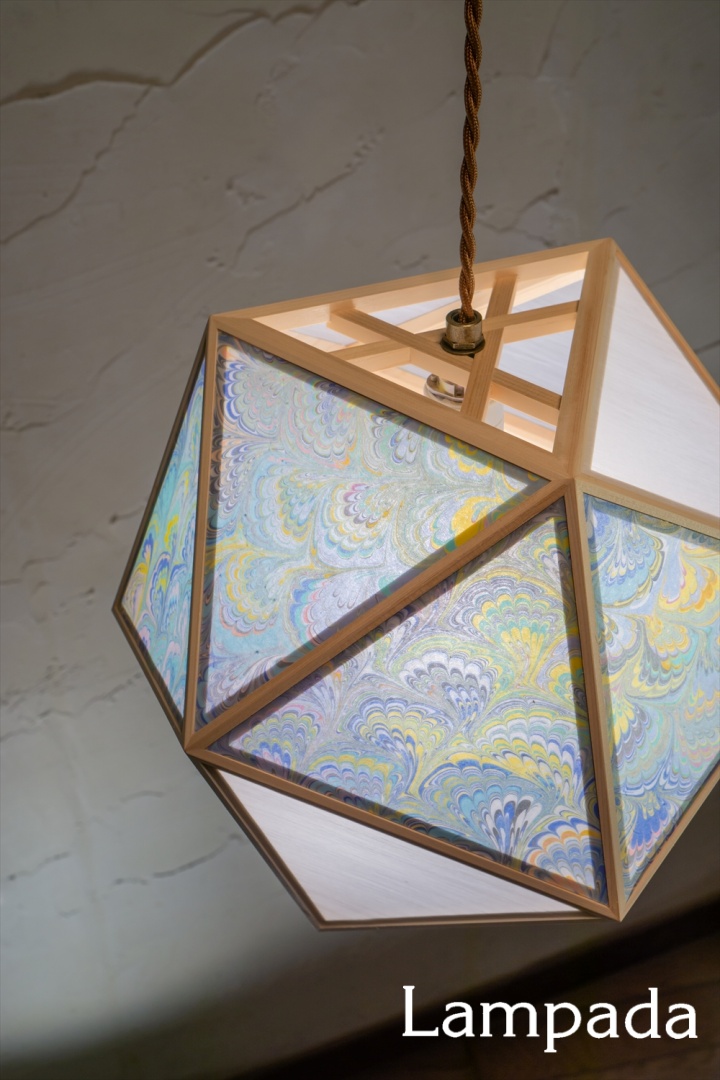 イタリアの伝統技法マーブリング×国産檜を使った日本製ペンダントライト